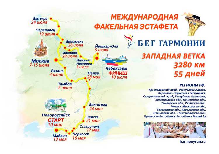 В нашей стране эстафета пройдёт в 25-й раз и преодолеет 6 280 км. Старт Западной ветке эстафеты будет дан 10 мая в Новороссийске.